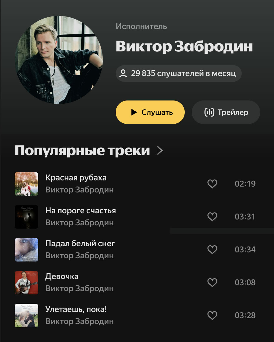 У Виктора тогда были сотни прослушиваний в месяц в Яндекс Музыке.